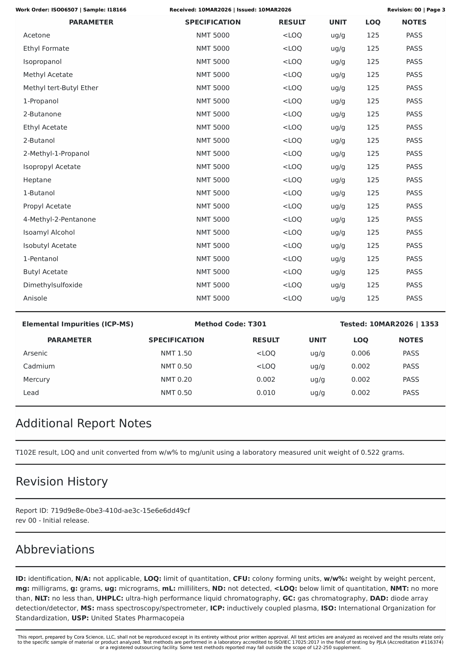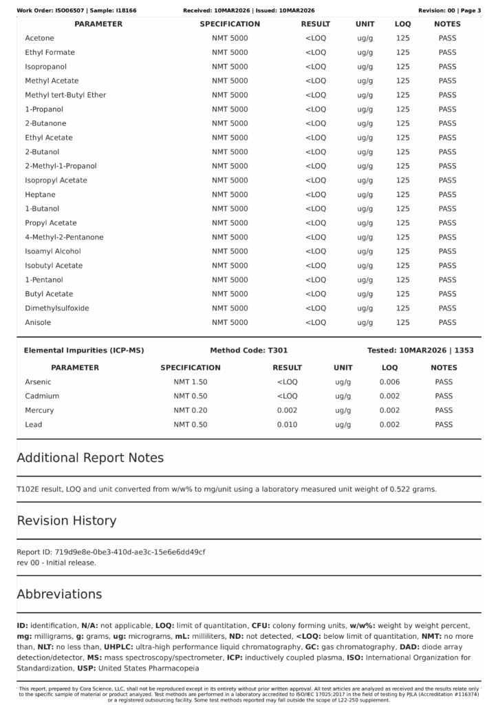 Residuals / Solvents TestsPASS