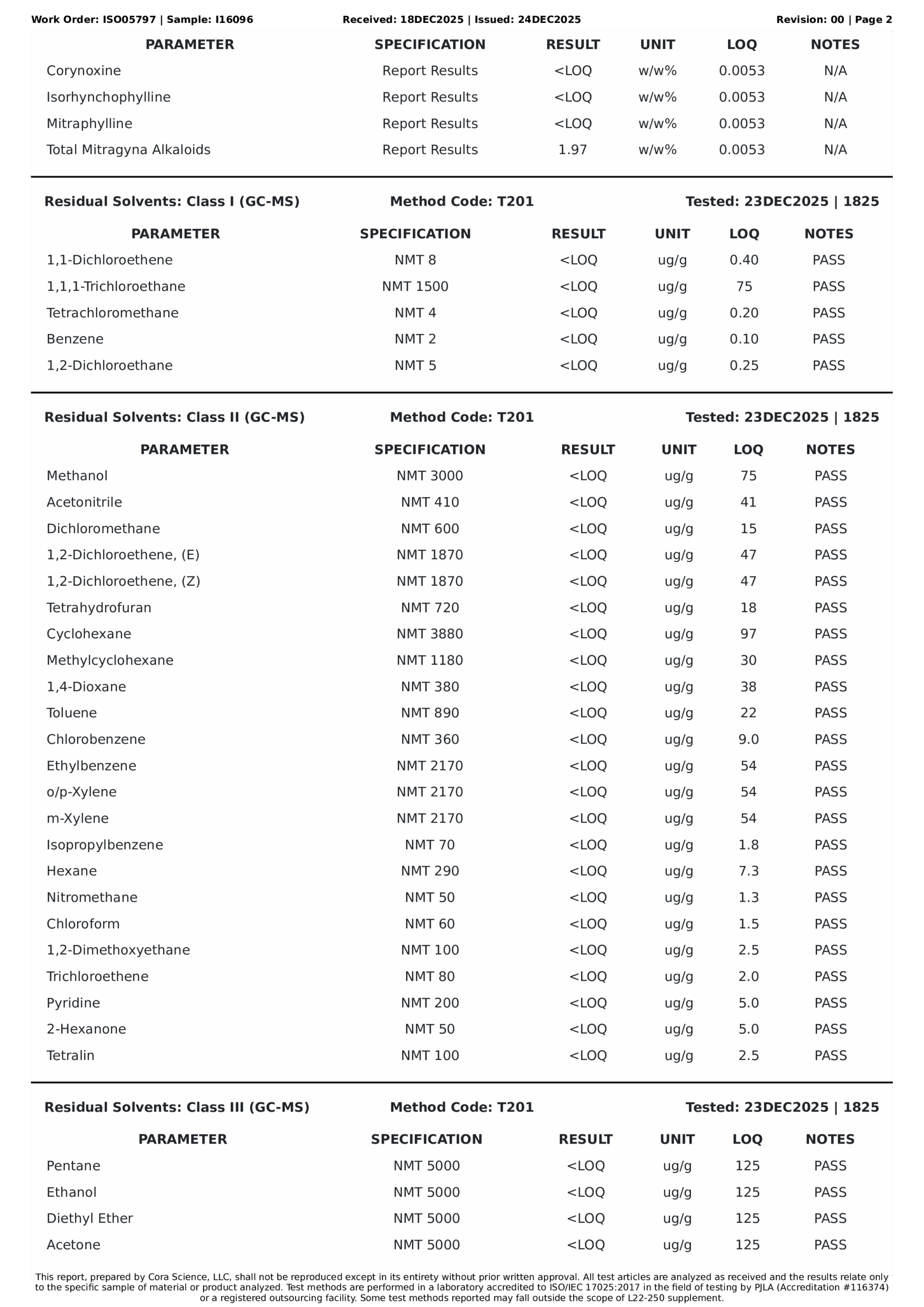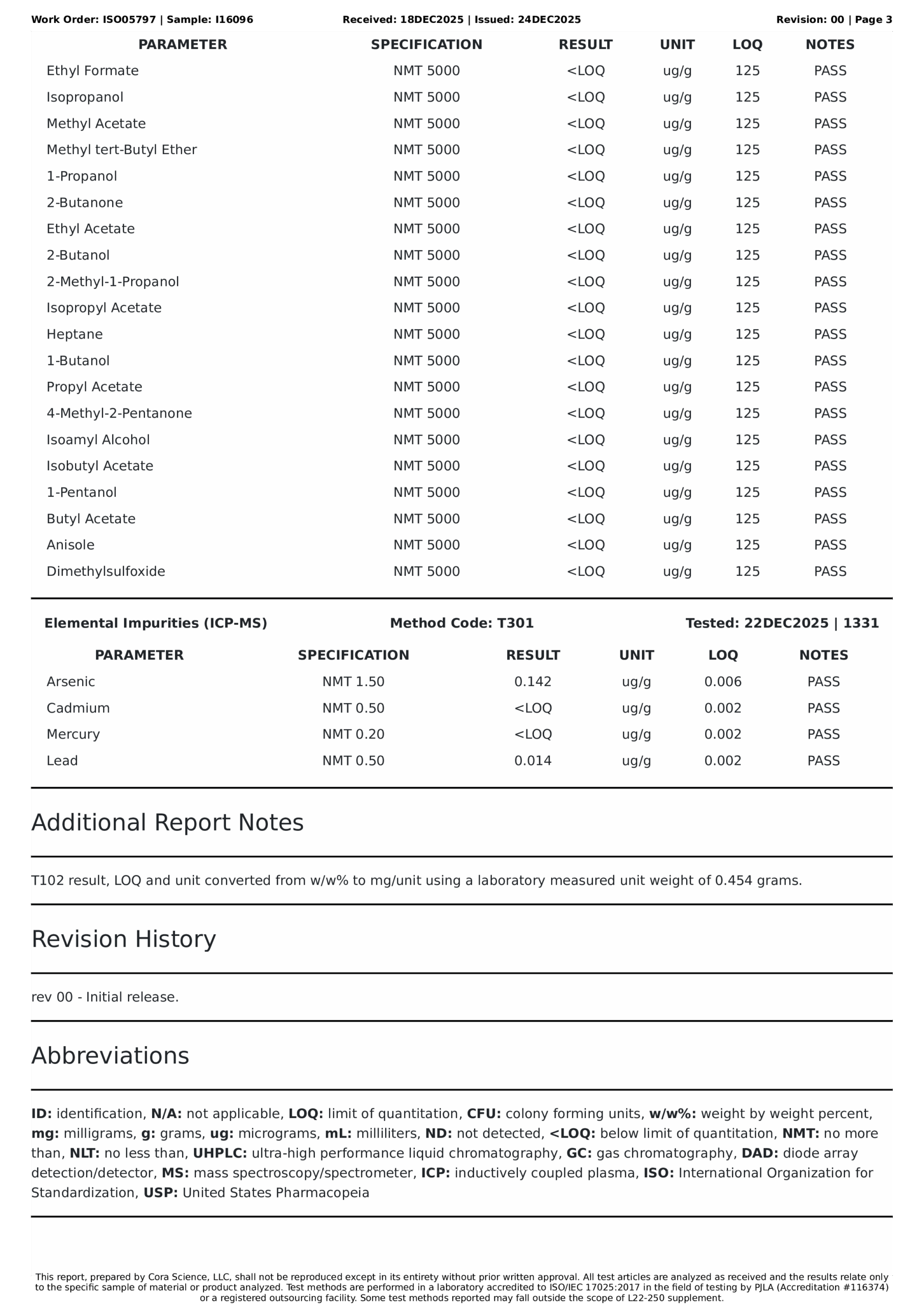 Residuals / Solvents TestsPASS