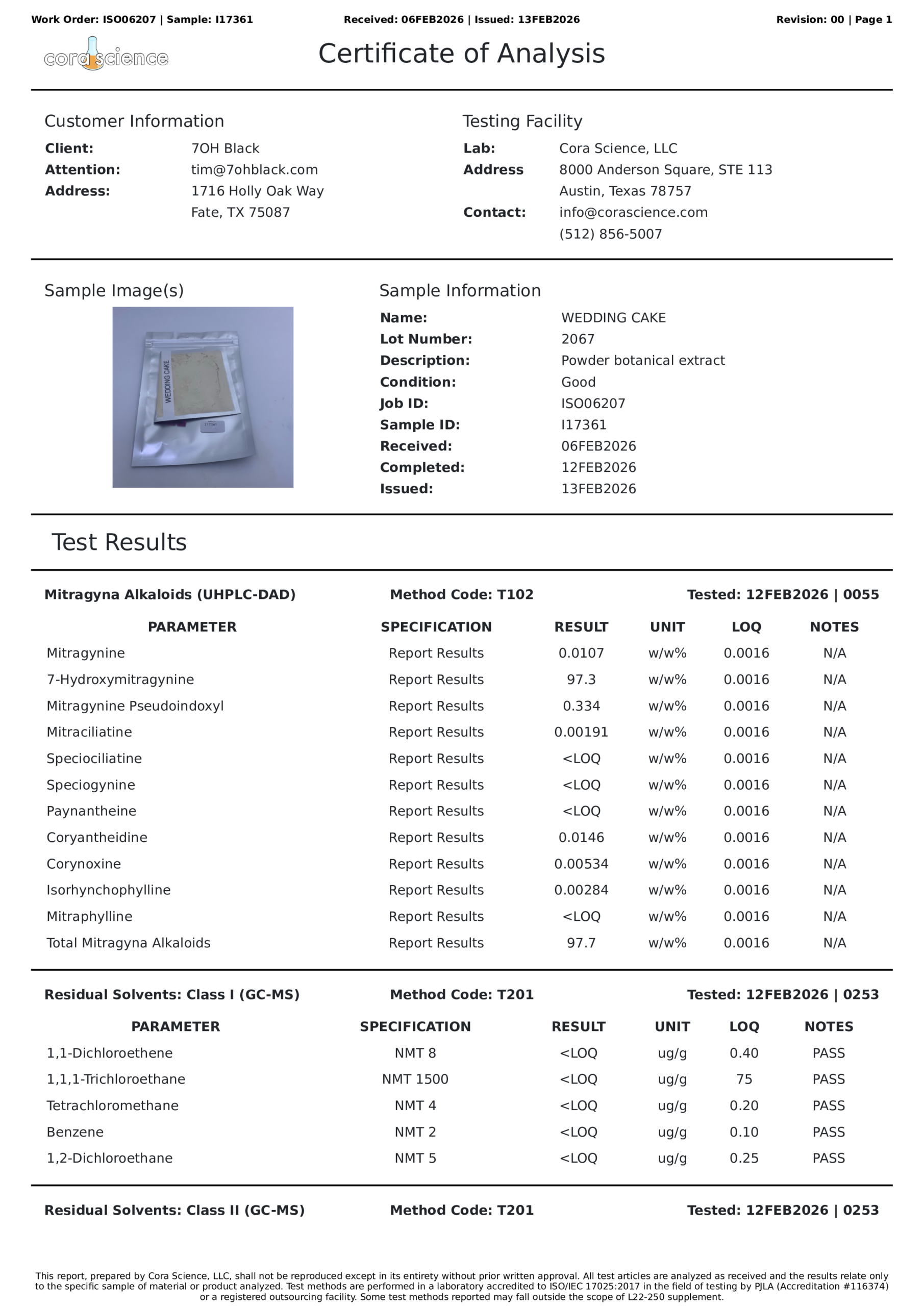 Wedding Cake – Alkaloid Profile