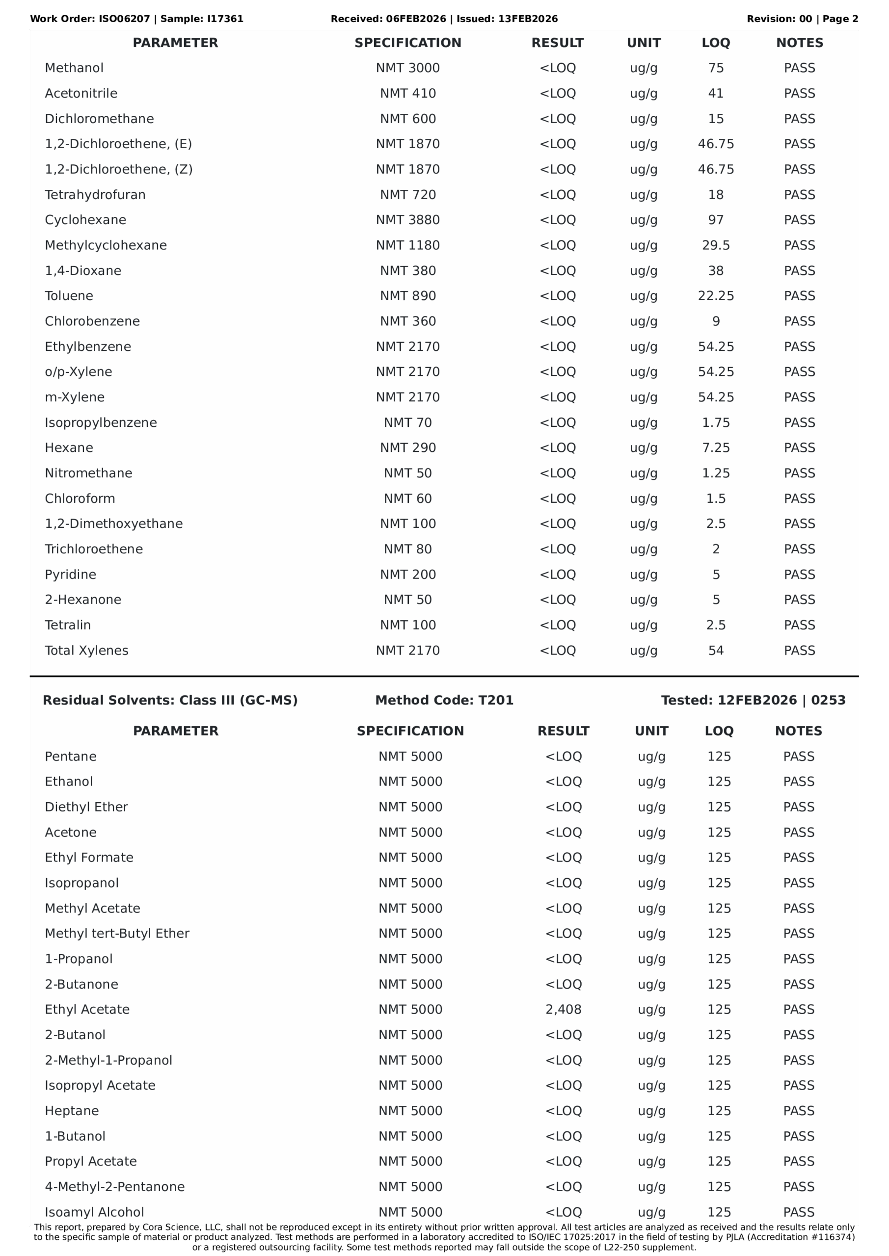 Residuals / Solvents TestsPASS