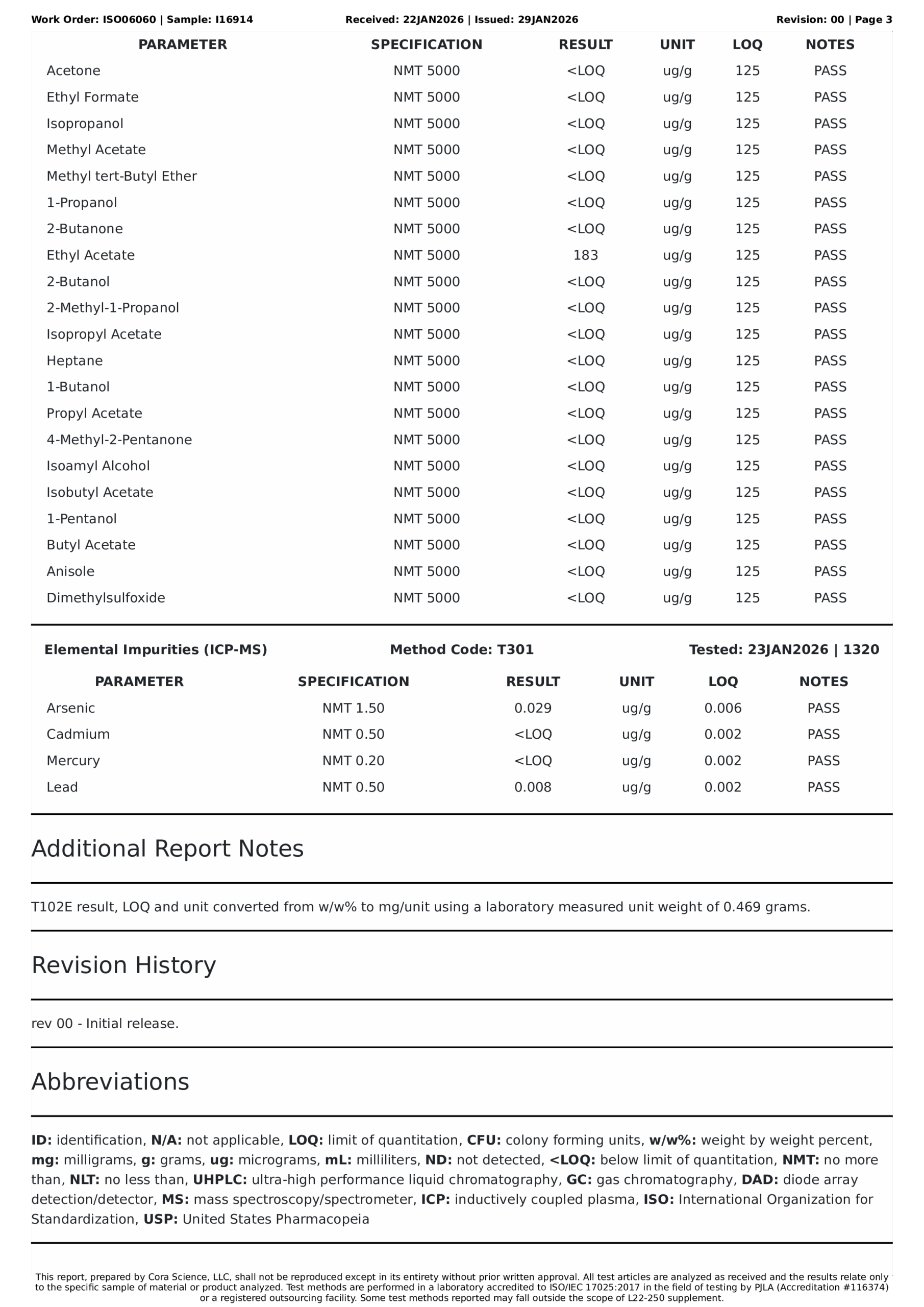 Residuals / Solvents TestsPASS